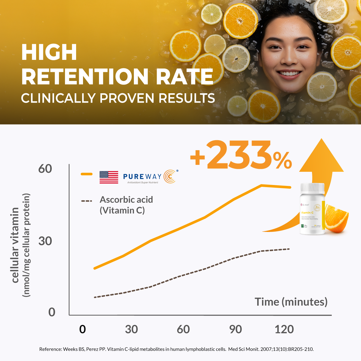 3.Superior Absorption: It features a clinically proven high retention rate , which is 233% higher than standard ascorbic acid.