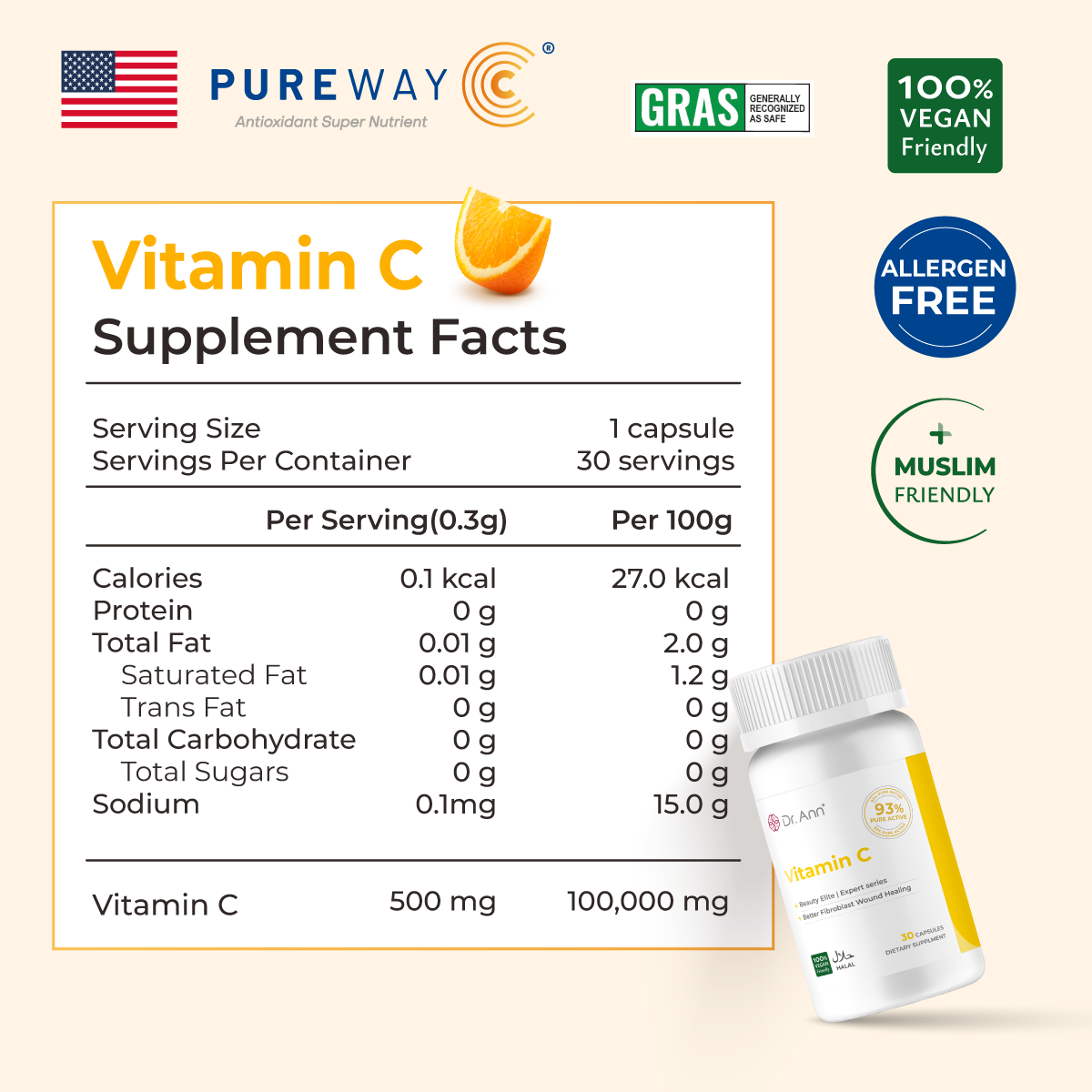 1. Core Ingredient: The formula is powered by PureWay-C® , a patented and science-validated antioxidant super nutrient.